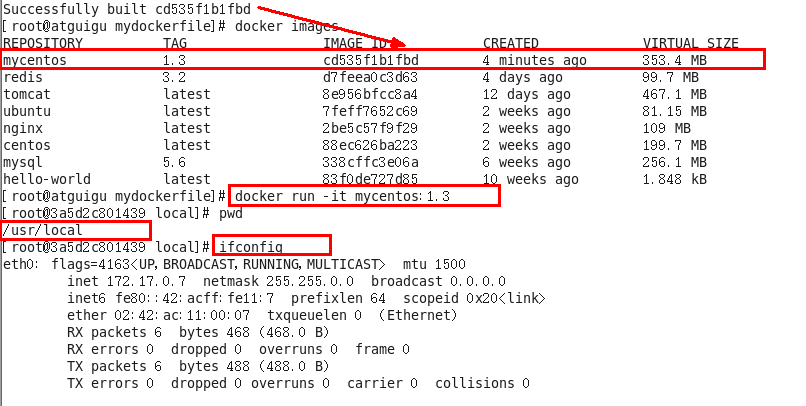 可以看到,我们自己的新镜像已经支持vim/ifconfig命令,扩展成功了。