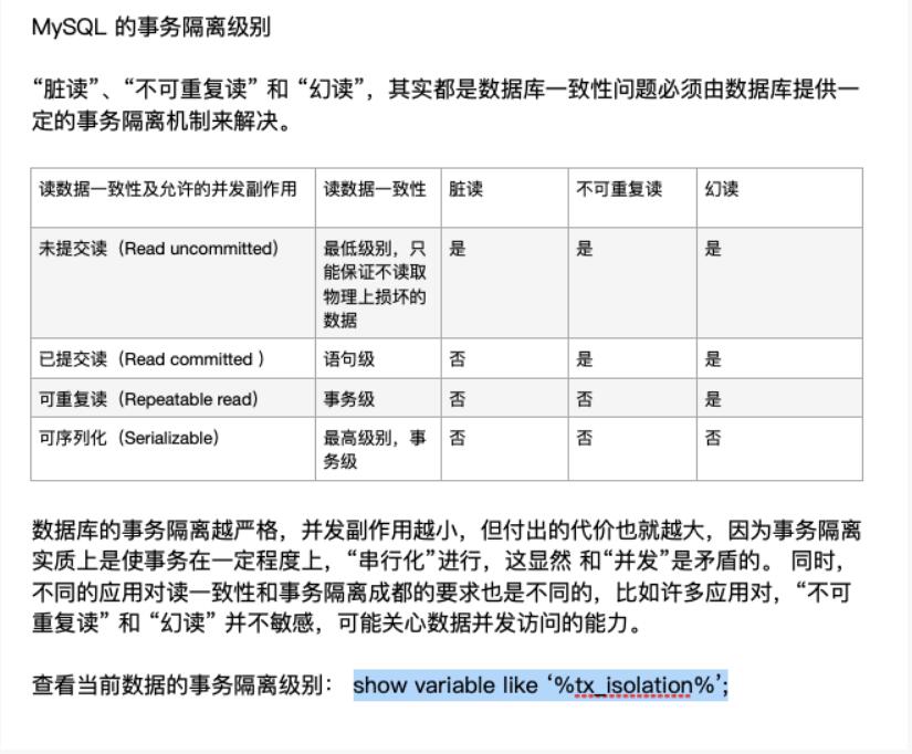 4. 幻读(Phantom Reads) 一个事务按相同的查询条件重新读取以前检索过的数据,却发现了其他事务插入了满足条件的新数据,这种称为 “幻读”