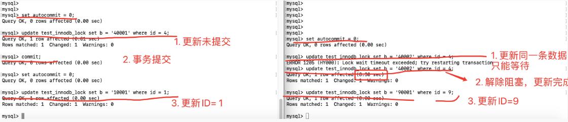 Innodb_row_lock_time_avg (等待平均时长) Innodb_row_lock_waits (等待总次数) Innodb_row_lock_time (等待时长)