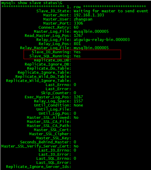 因修改过配置文件,请主机 + 从机都重启后台 mysql 服务