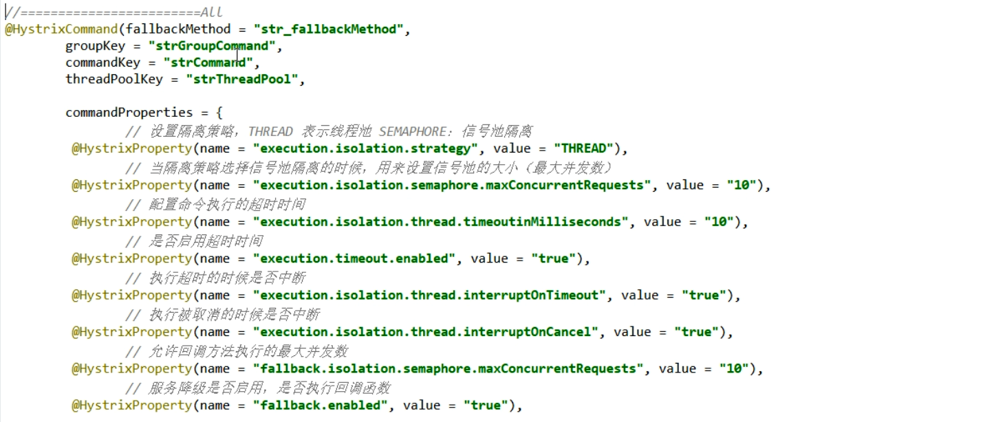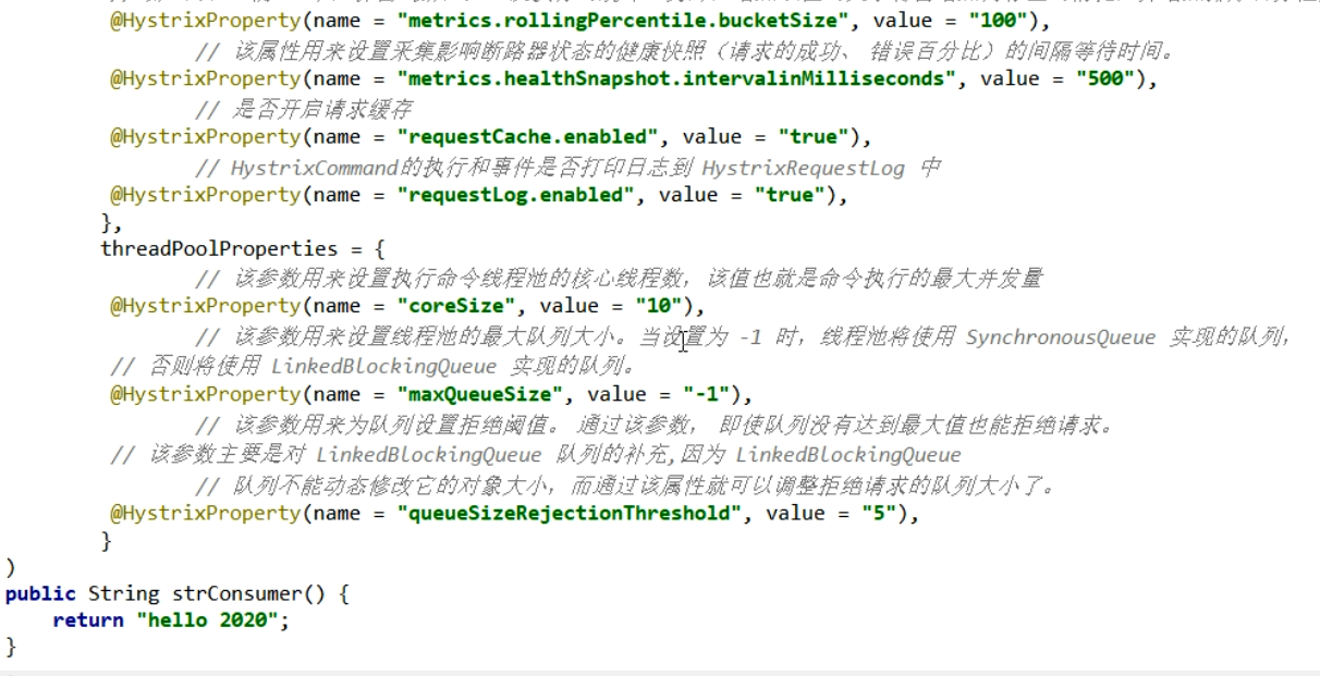 @GetMapping("/consumer/payment/hystrix/timeout/{id}") @HystrixCommand(fallbackMethod = "paymentTimeOutFallBackMethod",commandProperties = { @HystrixProperty(name = "execution.isolation.thread.timeoutInMilliseconds",value = "1500") }) public String paymentInfo_TimeOut(@PathVariable("id") Integer id){ return paymentHystrixService.paymentInfo_TimeOut(id); }