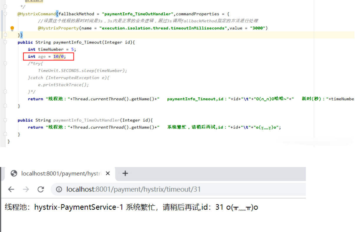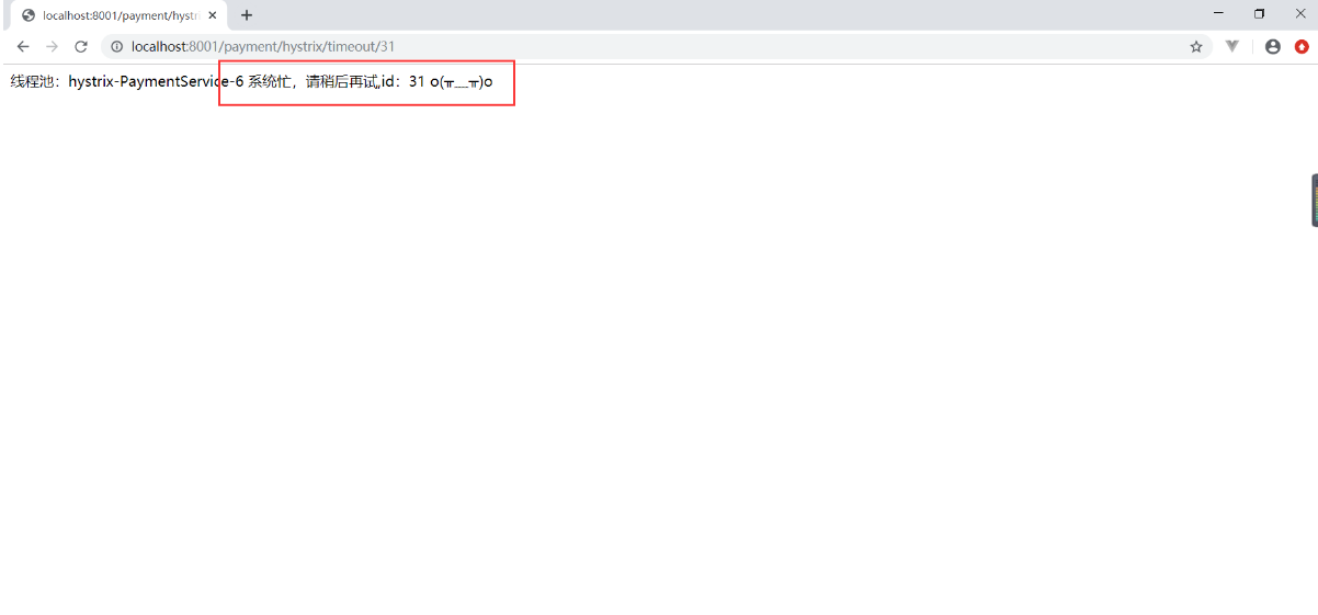 public String paymentInfo_TimeOutHandler(Integer id){ return "线程池:"+Thread.currentThread().getName()+" 系统繁忙,请稍后再试,id:"+id+"\t"+"o(╥﹏╥)o"; } }