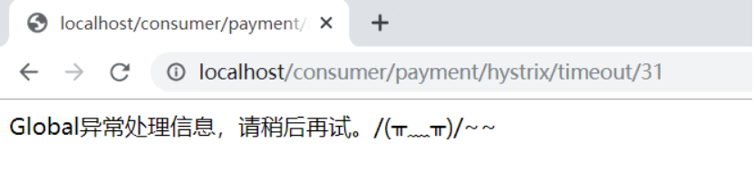 public String paymentTimeOutFallBackMethod(@PathVariable("id") Integer id){ return "我是消费者80,对方支付系统繁忙,请稍后再试,o(╥﹏╥)o"; } }