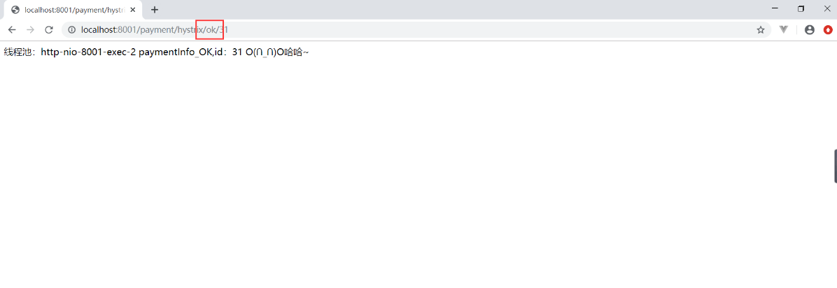 public String paymentInfo_OK(Integer id){ return "线程池:"+Thread.currentThread().getName()+" paymentInfo_OK,id:"+id+"\t"+"O(∩_∩)O哈哈~"; }