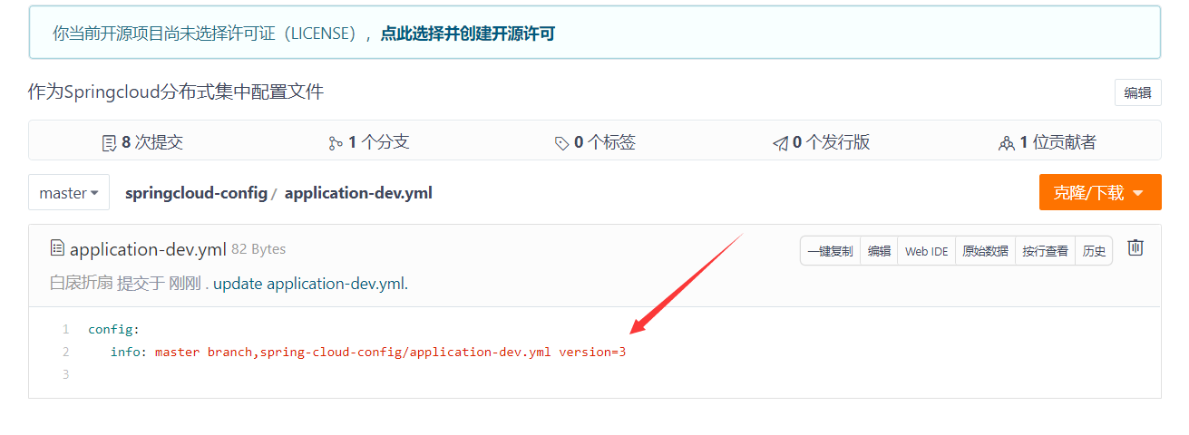 但是。现在修改config-dev.yml 配置并提交到github上,比如加个变量age或者版本号version。问题随之而来,分布式配置的动态刷新问题