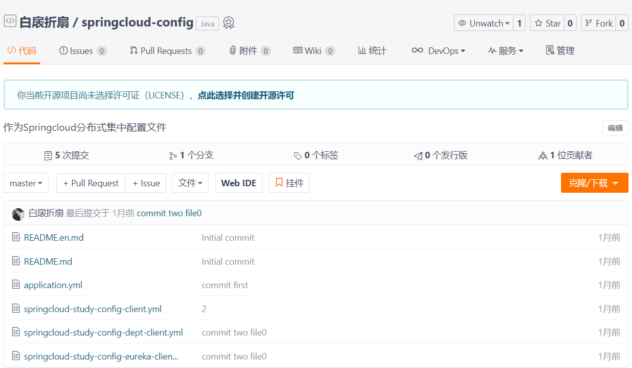 我的例子是建一个 springcloud-config仓库,包含三个yml文件,下面会读取文章文件中的信息