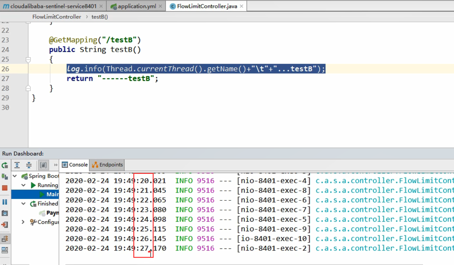 | @GetMapping("/testD") public String testD() { try { TimeUnit.SECONDS.sleep(1); } catch (InterruptedException e) { e.printStackTrace(); } log.info("testD 测试RT");