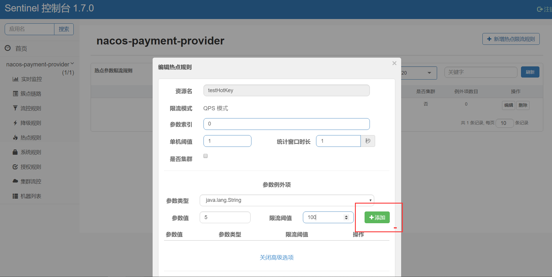 | @GetMapping("/testHotKey") @SentinelResource(value = "testHotKey",blockHandler = "deal_testHotKey") public String testHotKey(@RequestParam(value = "p1",required = false) String p1, @RequestParam(value = "p2",required = false) String p2) { return "------testHotKey"; }