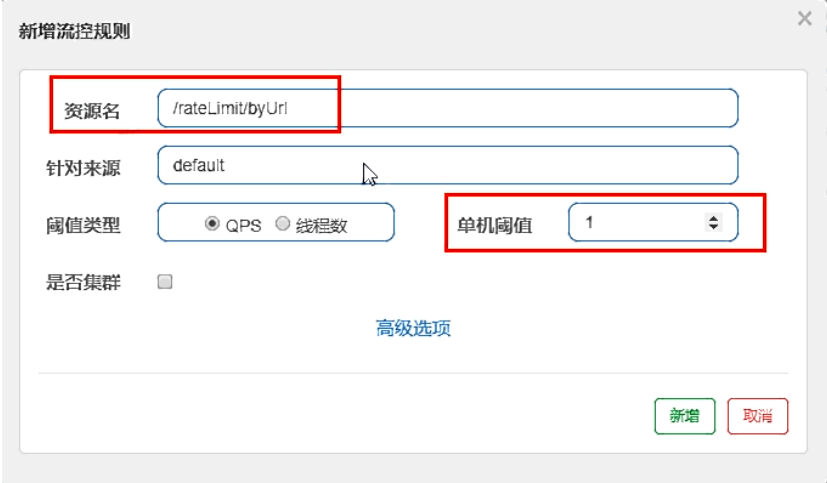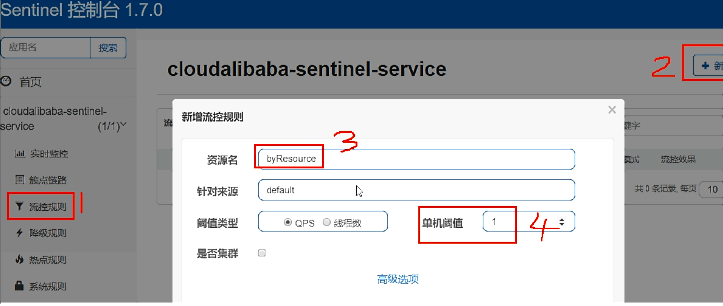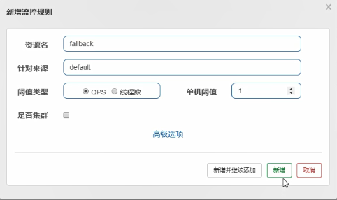 表示1秒钟内查询次数大于1,就跑到我们自定义的处流,限流
