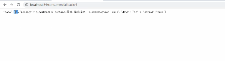 return result; } public CommonResult handlerFallback(@PathVariable Long id,Throwable e) { Payment payment = new Payment(id,"null"); return new CommonResult<>(444,"兜底异常handlerFallback,exception内容 "+e.getMessage(),payment); } public CommonResult blockHandler(@PathVariable Long id,BlockException blockException) { Payment payment = new Payment(id,"null"); return new CommonResult<>(445,"blockHandler-sentinel限流,无此流水: blockException "+blockException.getMessage(),payment); }