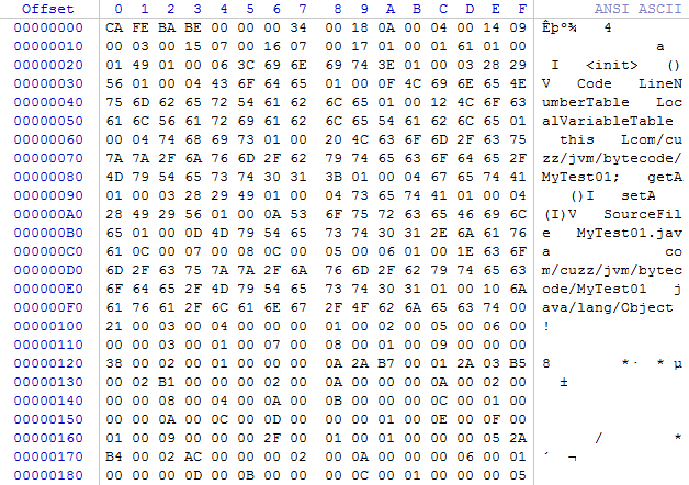我们也可以使用二进制文件查看器查看class文件的16进制信息(winhex下载 ):