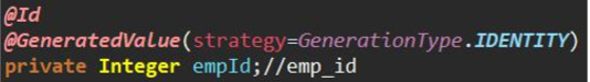 @Id @GeneratedValue(strategy= GenerationType.IDENTITY) private Integer empId;