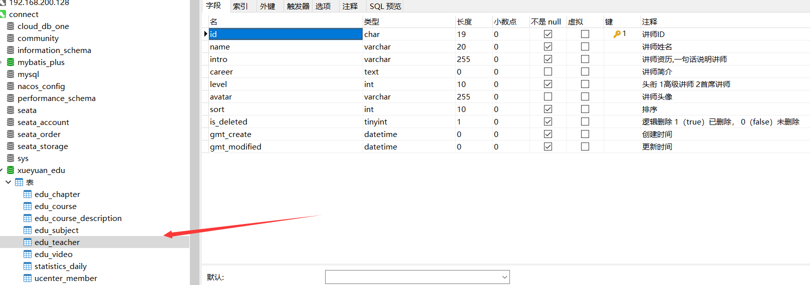 DataSourceConfig dsc = new DataSourceConfig(); dsc.setUrl("jdbc:mysql://localhost:3306/xueyuan_edu?useSSL=false&useUnicode=true&characterEncoding=utf-8&serverTimezone=GMT%2B8"); dsc.setDriverName("com.mysql.cj.jdbc.Driver"); dsc.setUsername("root"); dsc.setPassword("123456"); dsc.setDbType(DbType.MYSQL); mpg.setDataSource(dsc);