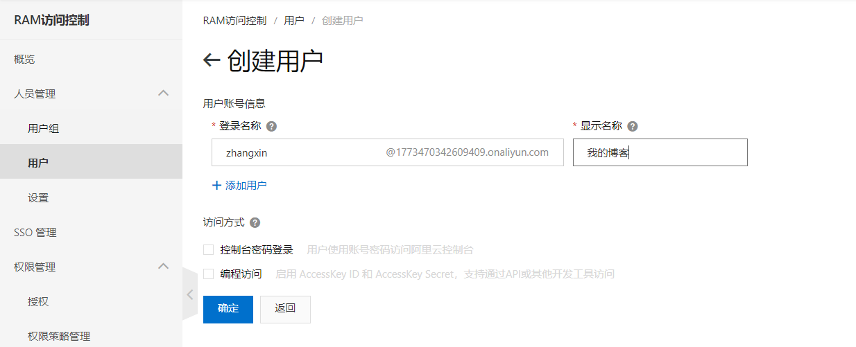 4、创建RAM子用户
