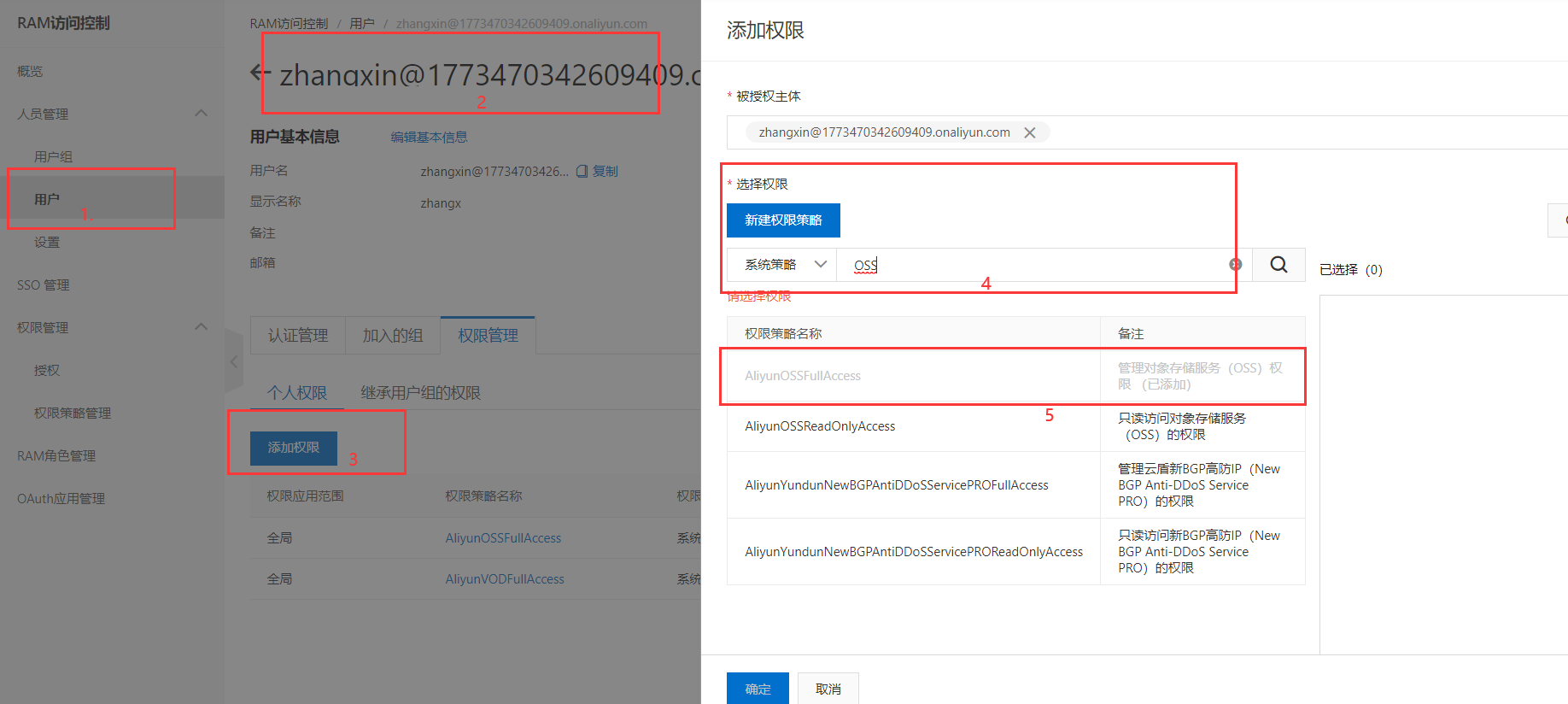 (2)设置用户组权限:AliyunOSSFullAccess
