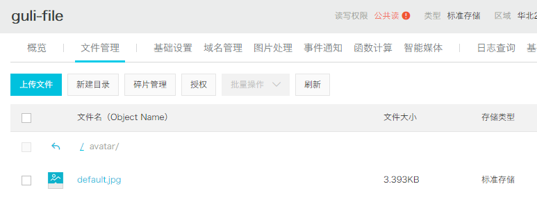 创建文件夹avatar,上传默认的用户头像