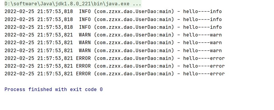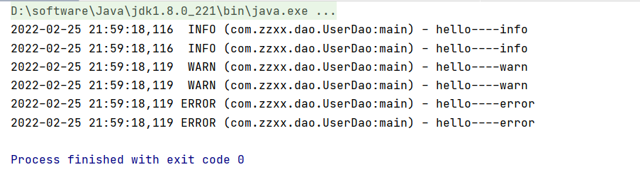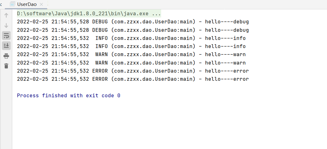 我们打印的是 com.zzxx.dao.UserDao 这个类下的,级别取精确是 com.zzxx.dao> com.zzxx > root(默认)