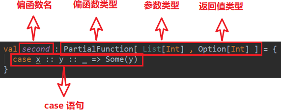 val second = newPartialFunction[List[Int], Option[Int]] { //检查输入参数是否合格 overridedefisDefinedAt(list: List[Int]): Boolean = list match { case x :: y :: _ => true case _ => false } //执行函数逻辑 overridedefapply(list: List[Int]): Option[Int] = list match { case x :: y :: _ => Some(y) } }