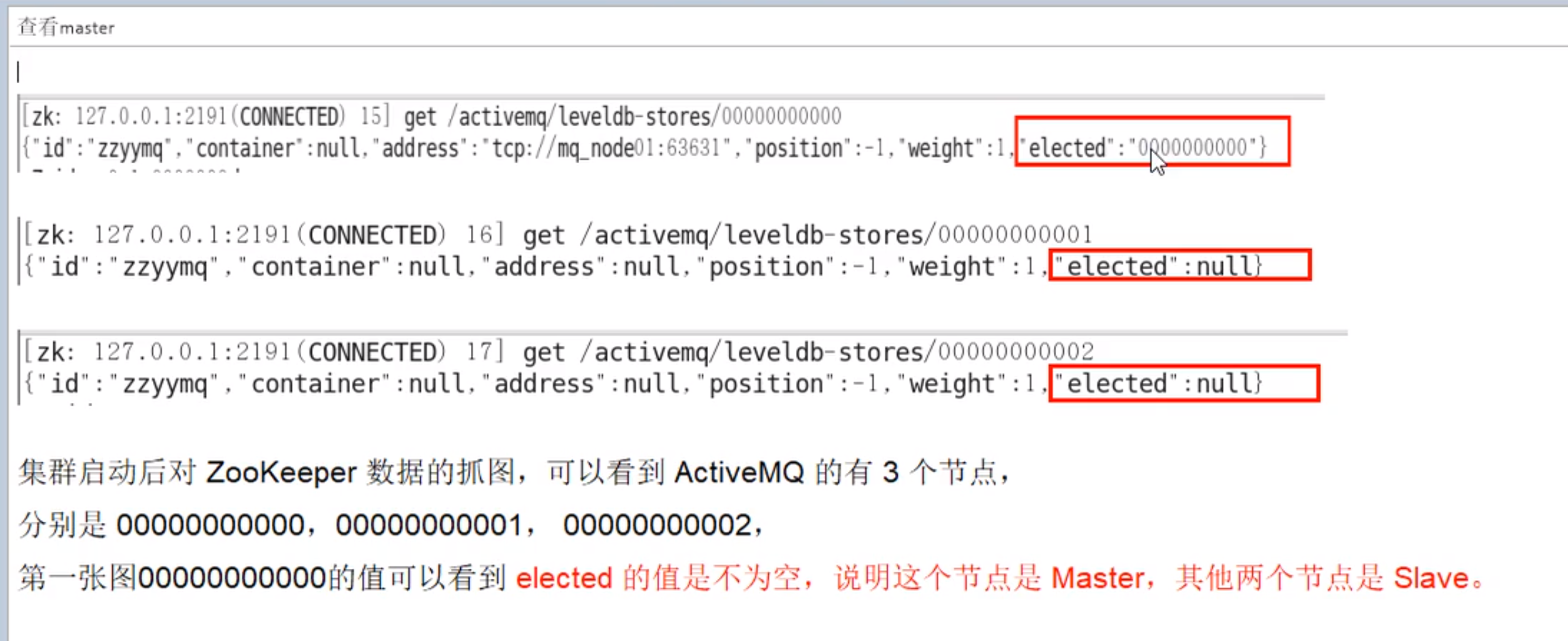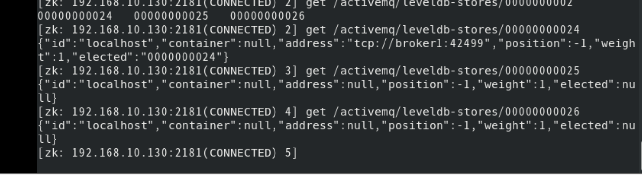 3台Zk连接任意一台验证三台ActiveMQ是否注册上了Zookeeper