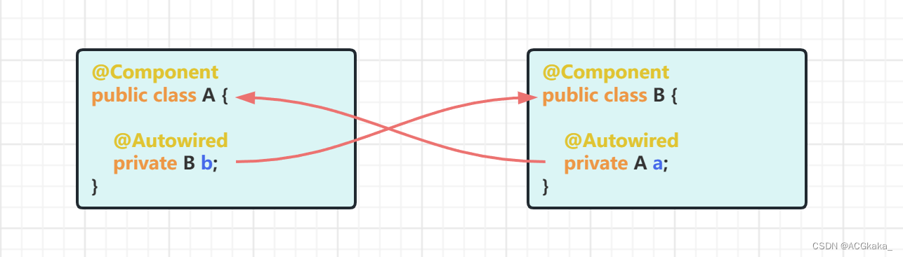 假设我们有两个类 A 和 B,类A和类B的实例互为成员变量即为循环依赖。